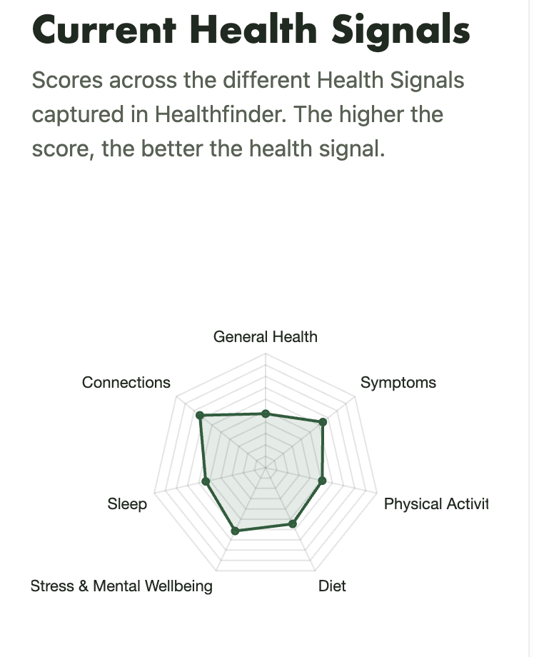 Please note that Healthfinder is not a diagnostic tool and does not replace medical diagnostics or assessments. It is designed to add an additional layer of insights around health, health signals and what may be influencing those health signals in order for care providers to deliver enhanced care.